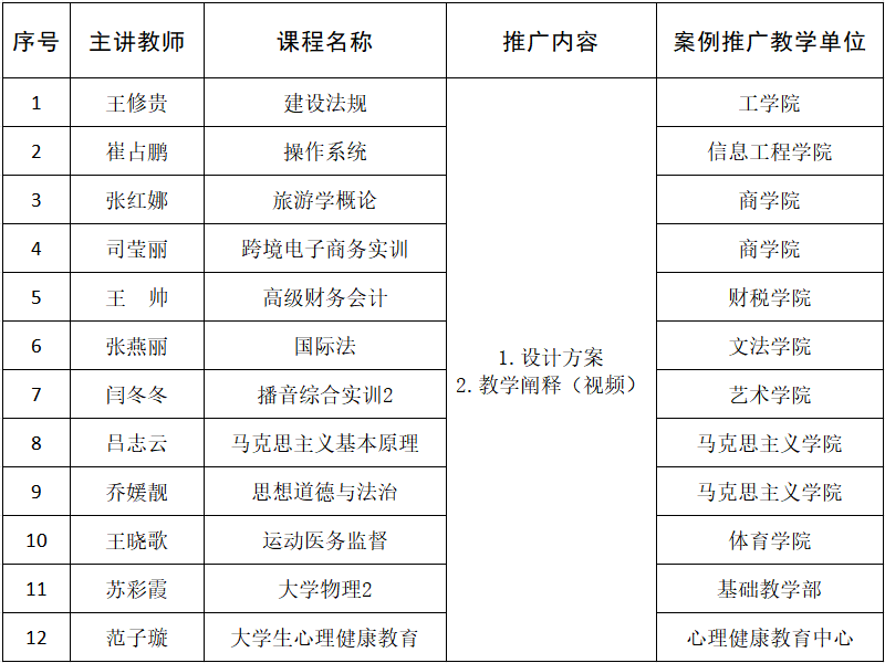 各案例推广教学单位的对接人需主动联系本单位入围的主讲教师,确保推广活动于规定时间(9月5-10日)内进行。