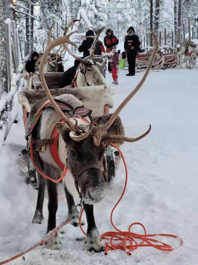 哈士奇拉雪橇与驯鹿农场:在拉普兰,一定要体验哈士奇拉雪橇。一群活泼的哈士奇拉着雪橇在雪地里奔跑,驯鹿农场也别错过,驯鹿的铃铛 “叮当作响”,在极光下,像一场 “童话里的”。