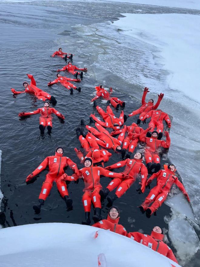 当船在开阔水域停下,还能体验“冰泳”——提供干燥保暖的漂浮救生衣“龙虾服漂浮”,在向导的帮助下快速跳进冰洞,再迅速爬上来,那种 “冷到极致又瞬间回暖” 的刺激感,会成为冬日最特别的记忆。