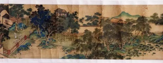 绢本。工笔设色。该图卷取自潍县园林“自怡园”实景,以工笔界画青绿山水的技法精绘而成。用笔勾勒细腻规整,设色青绿鲜明浓重。全图以精致的笔法、鲜浓的色彩、开阔的场景、充实的内容,形神毕备的呈现了自怡园的全部风貌。卷尾为谭汝霖题款,下钤 “谭汝霖印”白文印。此幅长卷为研究清代潍县园林提供史料借鉴。