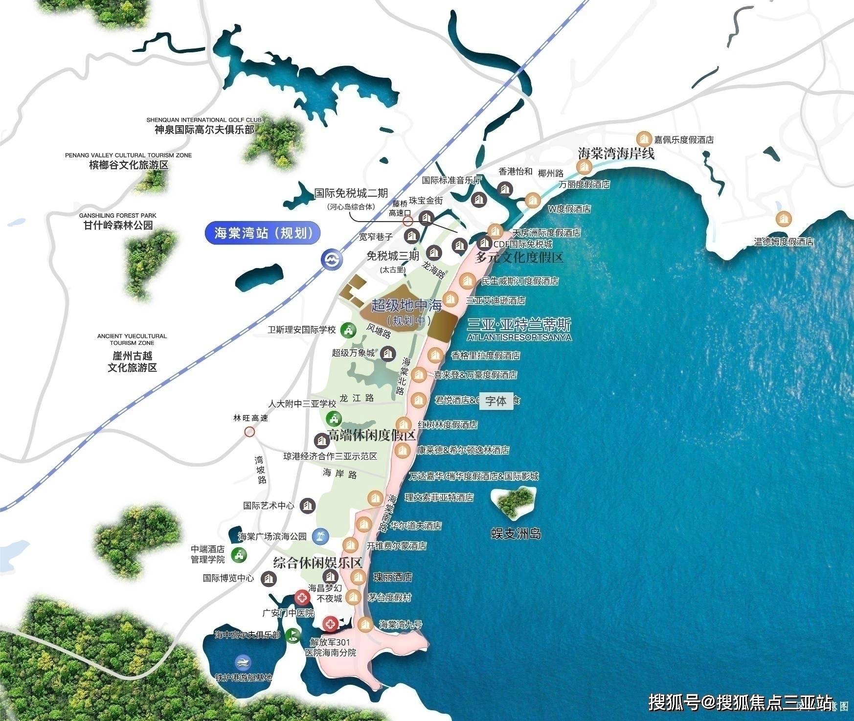 ◎通达交通属性——距离海岸线 公里,距离海南环岛高速路约 4 公里,通往高铁站及机场都十分便利,未来还规划了海棠湾高铁站,建成后出行更加便利。
