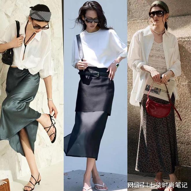 夏天的黑白T恤,搭配纯色的裤裙,有种低调克制的美,简单又耐看。入秋后,天气渐凉,可以把T恤换成轻盈的针织衫,既温暖又温柔。