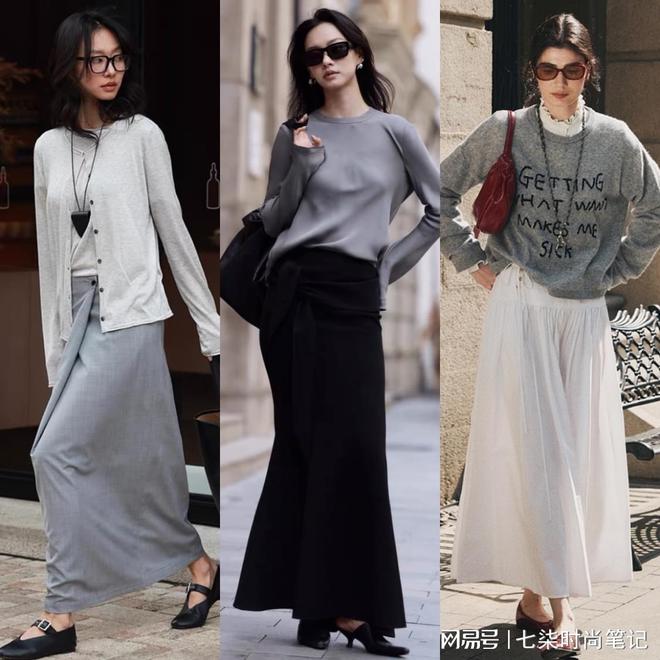 夏天的黑白T恤,搭配纯色的裤裙,有种低调克制的美,简单又耐看。入秋后,天气渐凉,可以把T恤换成轻盈的针织衫,既温暖又温柔。