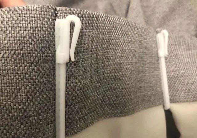 窗帘挂钩选择这种可调节的,买回来根据实际情况进行高度调节,上方留出一截可挡住滑轨的高度,这样就可以把滑轨隐藏起来,又省了一笔窗帘盒的费用。