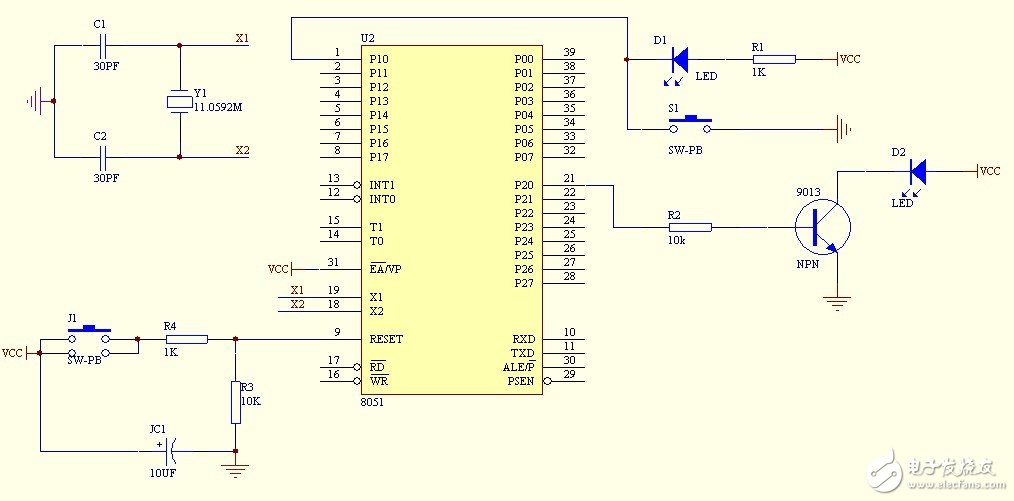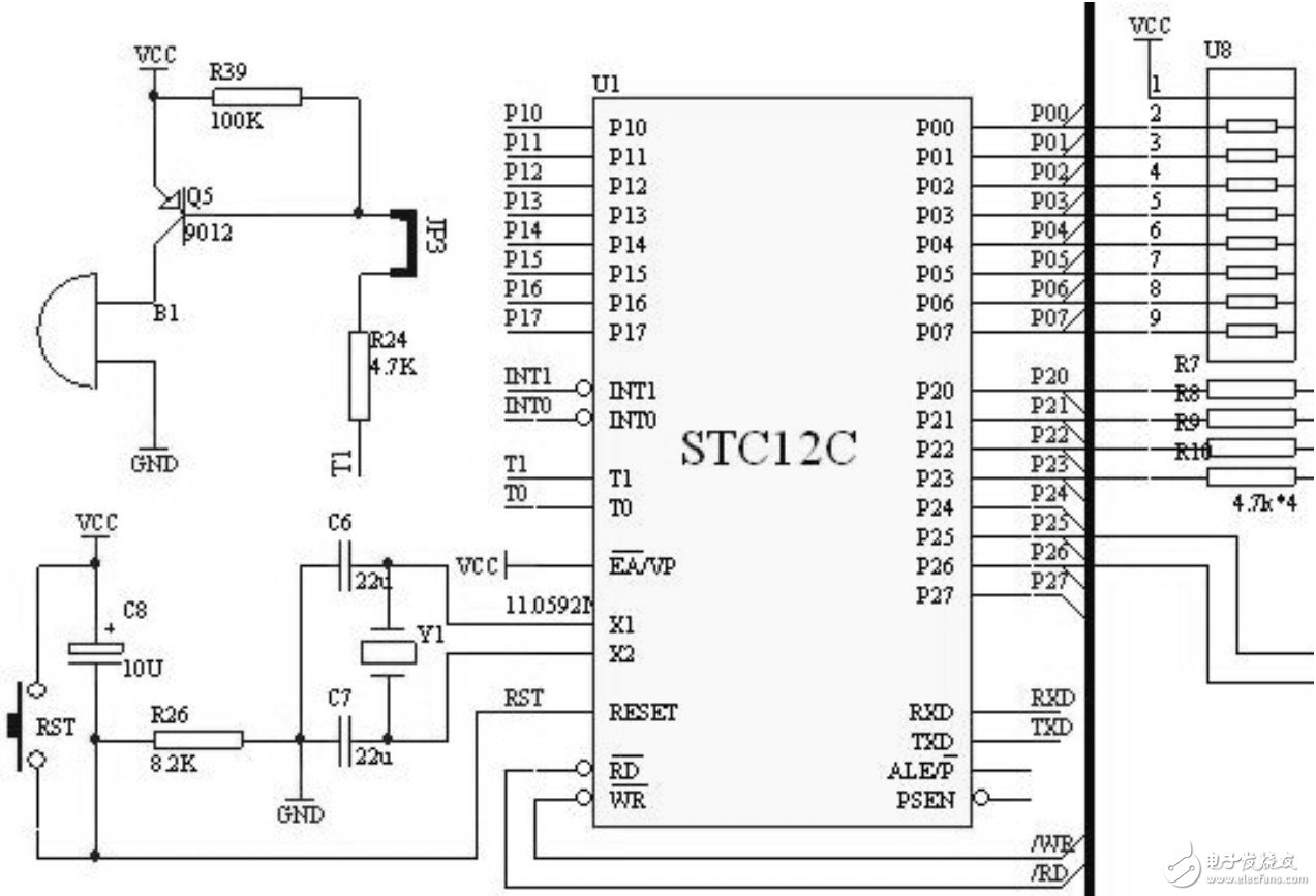 ($3.7875)为控制核心,以电脑作为上位机,实现在电脑上自动控制8路家电的开关状态,单片机嵌入式系统亦可以通过按键控制家电的开关。硬件部分包括单片机最小系统,串口通信、液晶显示界面三大部分。最小系统部分单片机选用了AT89C51($3.7875)