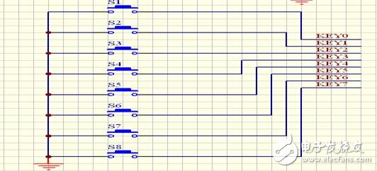 如图3-2,键盘电路采用3×4矩阵式接口方式,由STC89C52单片机P0.0-P0.6七个口控制。根据按键识别原理,行线K上拉电阻,处于高电平状态,可将列线置低,检查行线状态,若为高则无键按下,为低则有键按下;然后让列线逐列为低,再检查行线状态,判断出哪个键按下。显示电路通过单片机串行口RXD、TXD输出,采用串行输入芯片MC74HC164